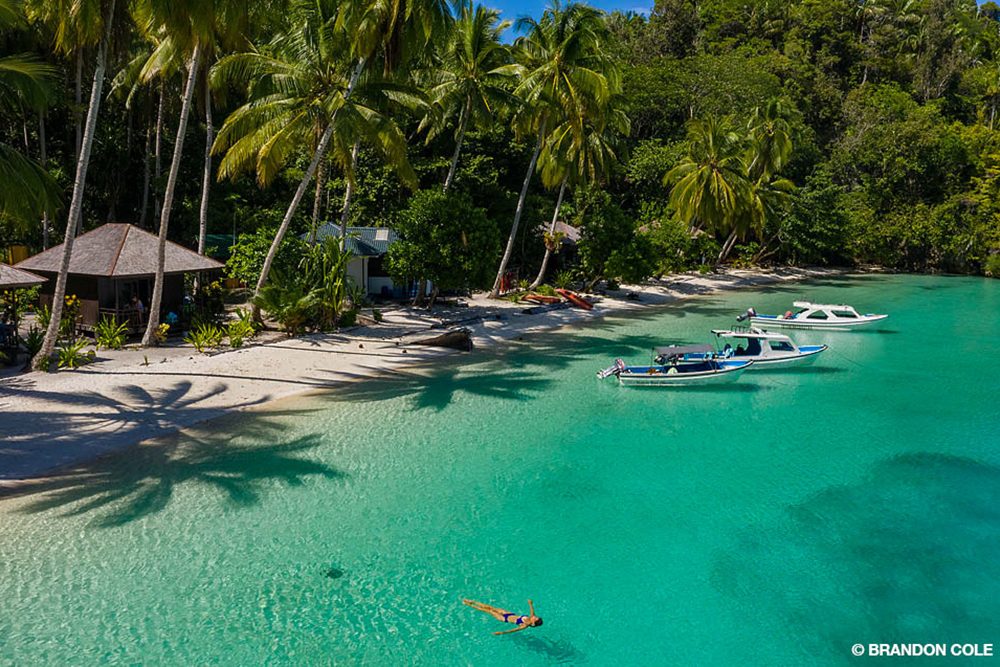 Getting there: Triton Bay, in eastern Indonesia’s West Papua province (previously called Irian Jaya), is remote; getting there takes time and effort. The best route from North America currently is to fly to Jakarta and connect to Kaimana through Sorong or Manokwari. Using Bali as your international gateway instead of Jakarta is an option, but that usually involves an additional flight or two and sometimes an overnight stay. Expect excess baggage fees, and paying cash in the local currency (Indonesian rupiah) is usually required. Flight times, routes, and even which airlines are servicing Kaimana change frequently, and it may be difficult to book flights directly from North America. The resort or liveaboard with whom you are diving should have good advice for flight and booking options.