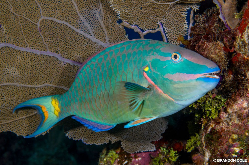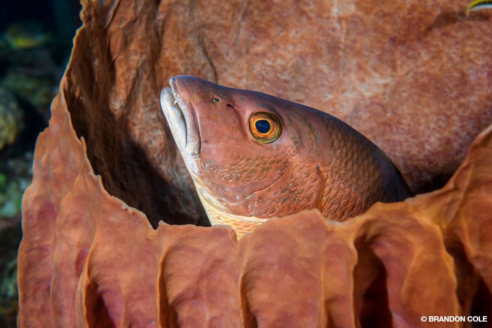 During the ascent up the wall, we discovered a fat mutton snapper lounging behind a spray of soft corals, a few black and Nassau groupers, and a yellowfin grouper with the tail of its last meal sticking out of its mouth. All these species have suffered population declines in much of the Caribbean, so it was uplifting to rub shoulders with these big, tasty, and — at least here — relatively safe fishes. Mary’s is in the Roatán Marine Park, and its marine protected area (MPA) status confers some protection for this stellar reef’s residents.