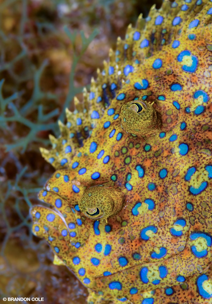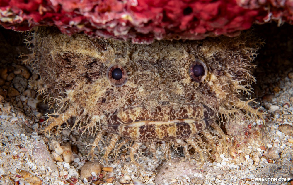 I forgot to ask who Jack Neil was and why this site bears his name, but this was a fun, 75-minute dive with sightings of sailfin blennies, pipefish, garden eels, strange burrowing mouse urchins, and spider crabs cunningly camouflaged with algal debris. A bearded toadfish — undeniably ugly and inexplicably charismatic — stared belligerently at me from its lair.