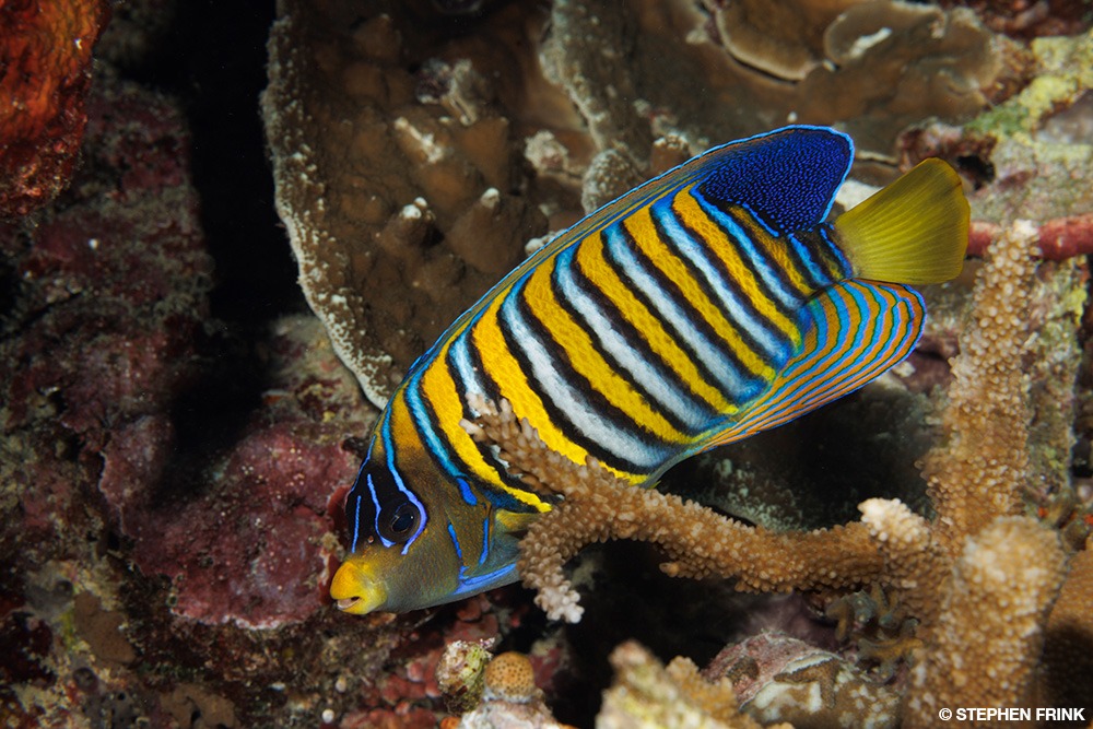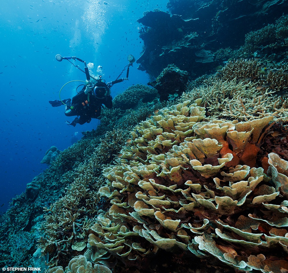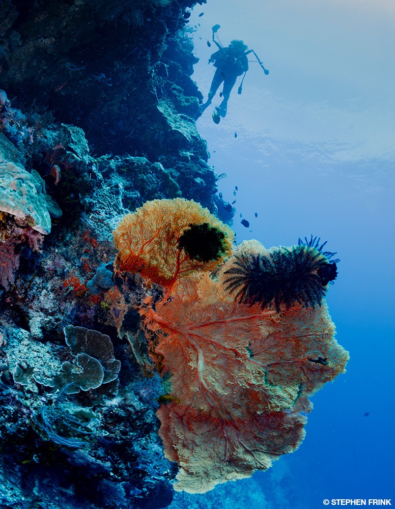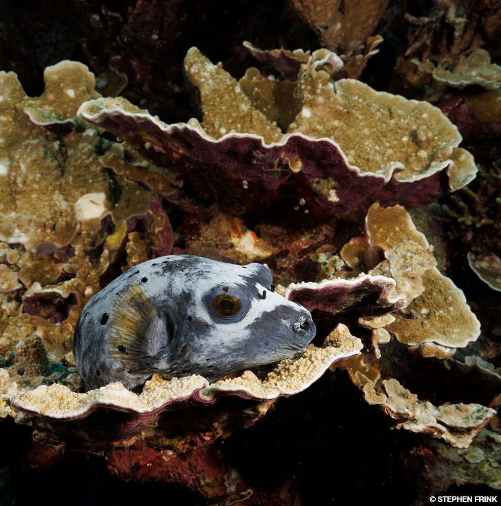 That dichotomy — wide-angle versus macro — held throughout the trip. It was like being on totally separate reefs, depending on the lens. The wide-angle imaging was so compelling that I mounted my 100mm macro lens only twice: once on a night dive and the other at the end of the trip, allowing me to concentrate on the myriad small angelfish and butterflyfish that are specially adapted to feeding in the hard corals.