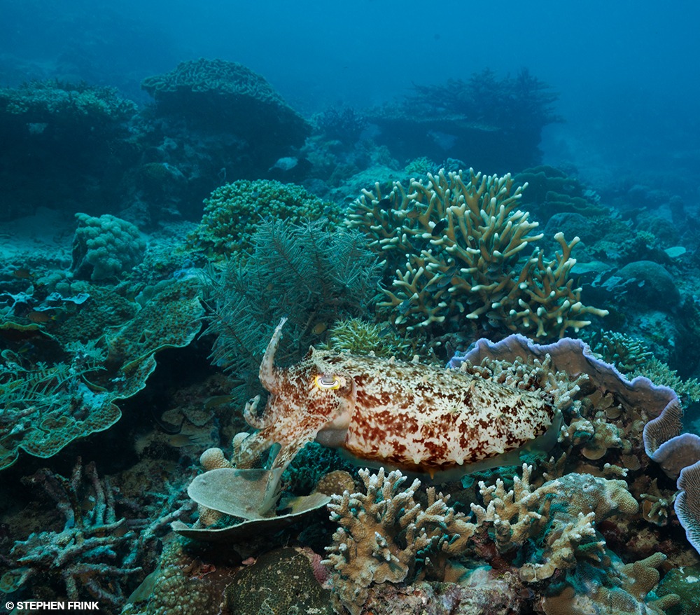 We began the trip with a somewhat underwhelming dive following the overnight crossing to Sangalaki. Coral Highway was a little disappointing, mostly because I was shooting wide-angle, and the only significant subject was a cooperative broadclub cuttlefish. Those who chose macro raved about their fire dartfish, emperor shrimp, and whip coral shrimp.