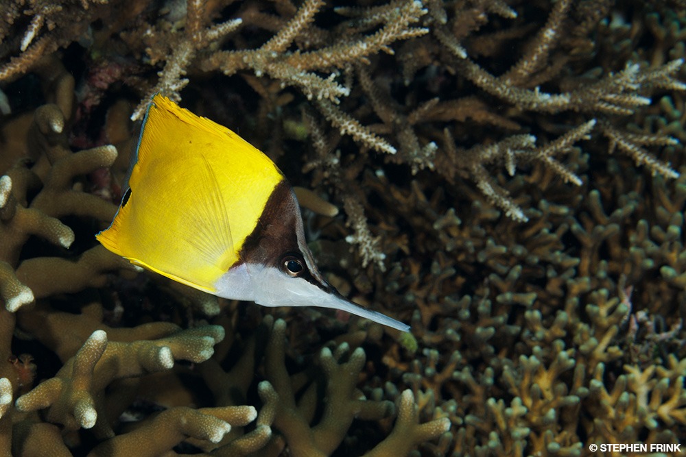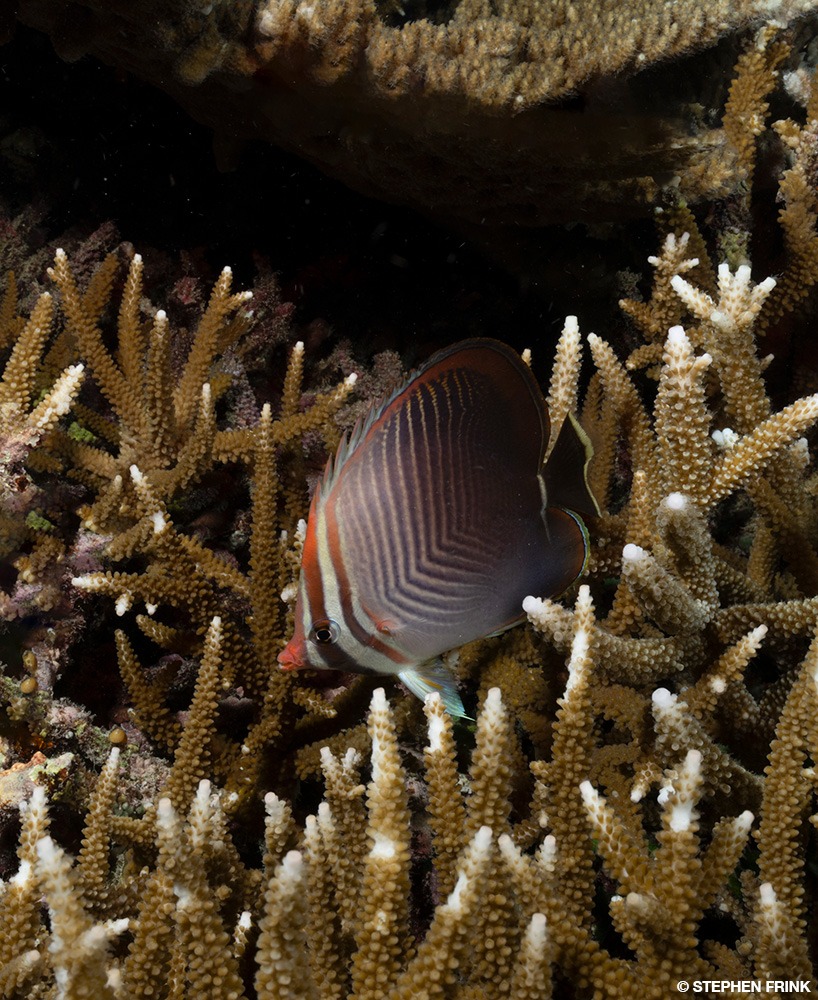 I needed some subject discipline for this dive, as I had spent the week celebrating the hard corals and devoted too little time to the creatures that populate the shallow reef. This final dive would be all with my 100mm macro lens so I could capture the long-snout butterflyfish, regal angelfish, and dozens of other species of small Indo-Pacific butterflyfish I couldn’t name without a fish identification book.
