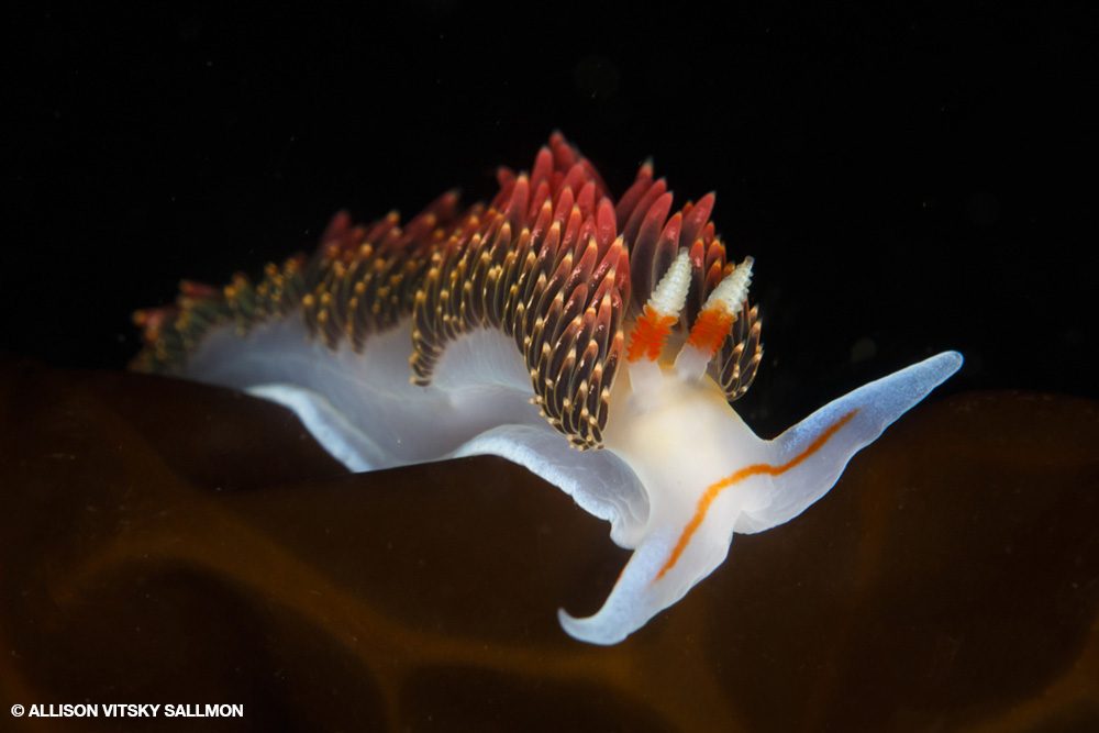 On deck, we quickly recognize that we’re on the western side of Santa Barbara. The spectacular dive sites on this side of the island — standouts like Arch Reef, hydrocoral-dotted Hidden Reef, kelp-encircled Sutil Island, and even the sandy patches — hold extraordinary marine life. The phenomenal diversity of this island truly reflects the convergence of the cold California current and the warmer Southern California countercurrent that’s a key feature of the Channel Islands — but Santa Barbara always seems uniquely supercharged to me, probably because everything is packed into such a diminutive area. Our dives in this area deliver an incredible mix of sightings: garibaldi, California sheephead wrasse, giant black sea bass, a harbor seal, and some rare nudibranch species. We’re a sad group when the captain announces that the wind here is forecast to kick up, so we’ll be doing one more dive on the island’s slightly more protected eastern side, and then we’ll need to head toward Catalina.