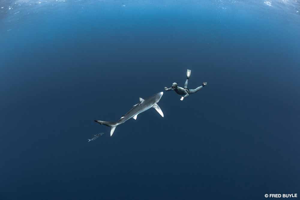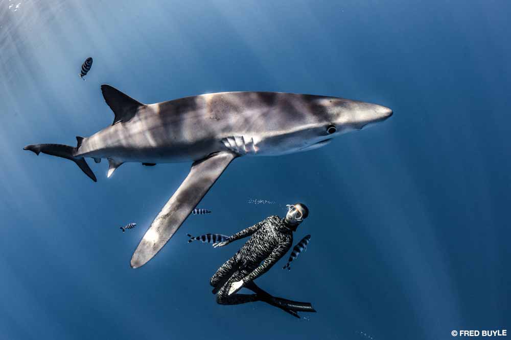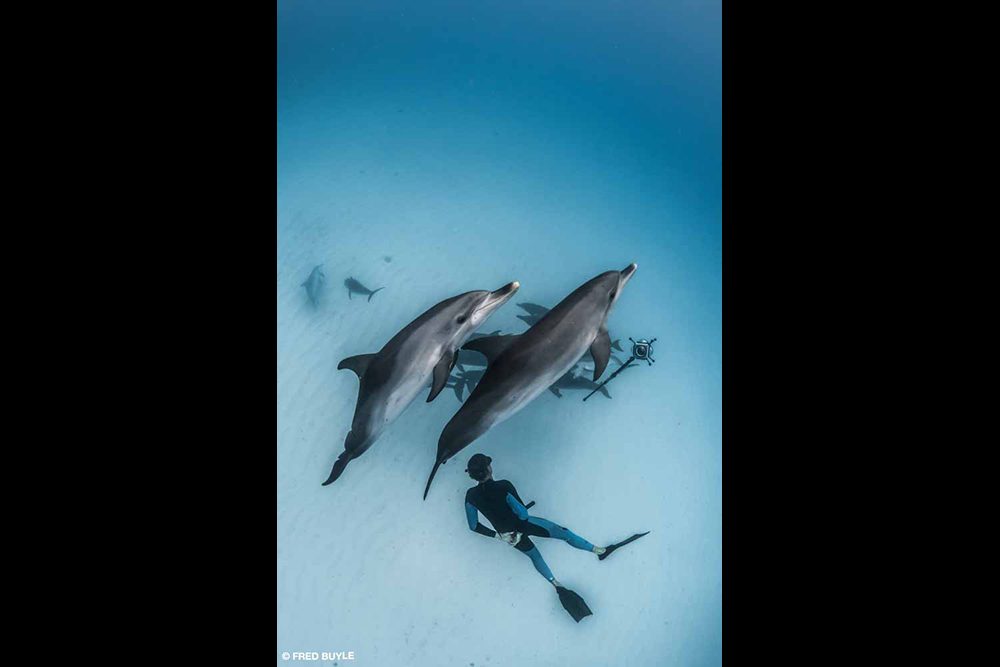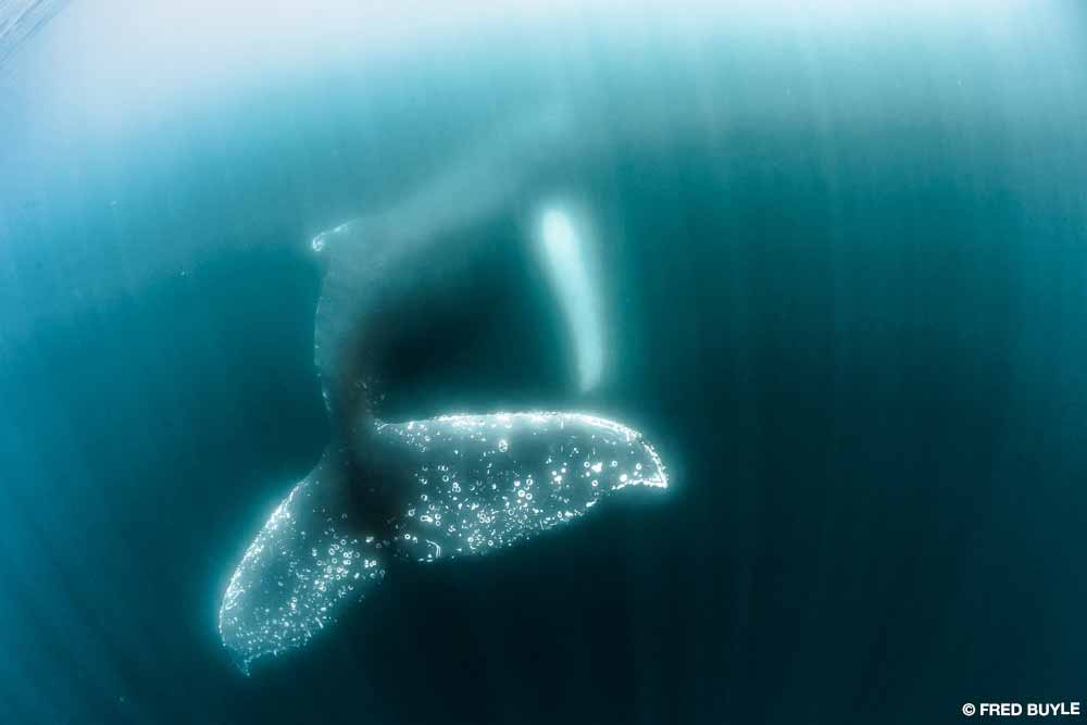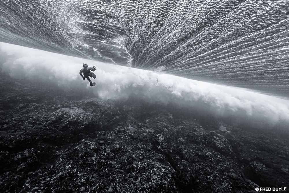 A STATEMENT ON FRED BUYLE’S WEBSITE briefly explains his approach to underwater photography: “To take his pictures and videos, Fred uses a simple formula: the water, available light, a camera, and one breath of air, nothing more, nothing less.” I would add to that list an extraordinary eye for composition and a passion for placing himself wherever the photo opportunities are. The images in his portfolio represent decades of travel to exotic destinations far from his home in the Azores. He has tolerated fewer overweight baggage fees than other photographers might, for his life and aesthetic are remarkably minimalistic for a man of such accomplishment.