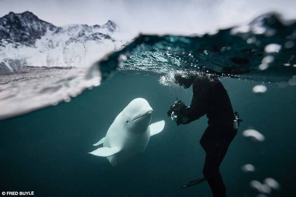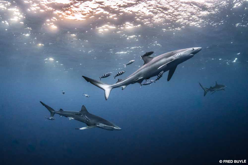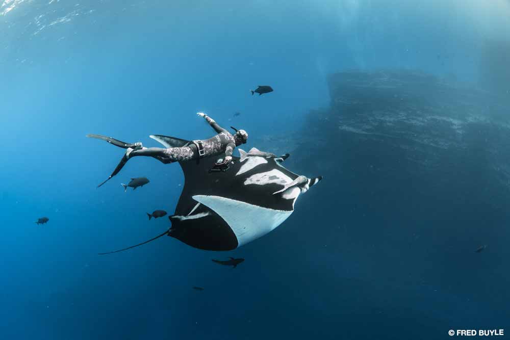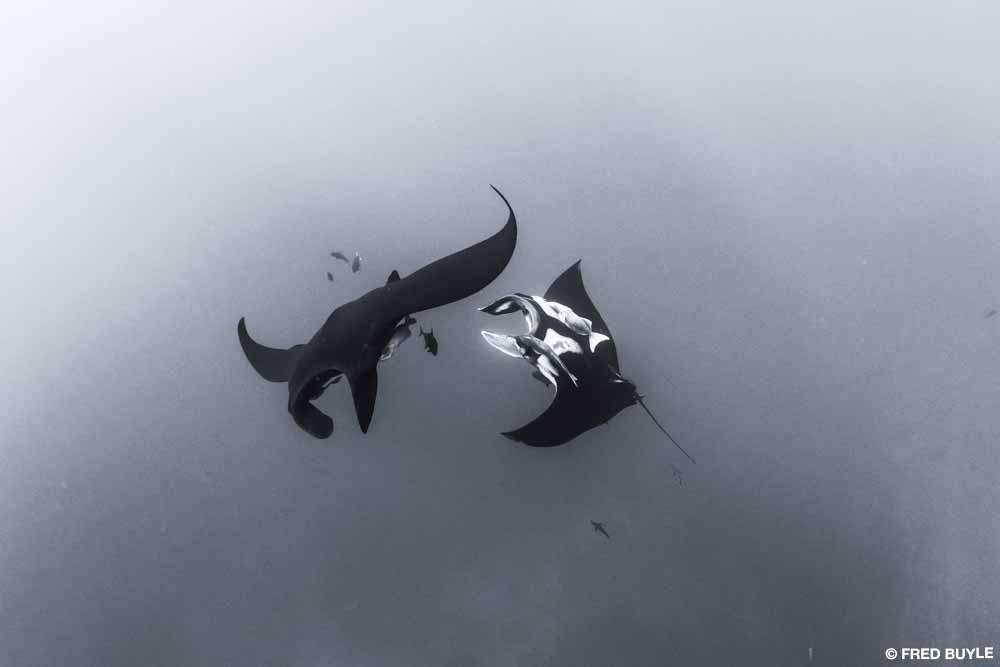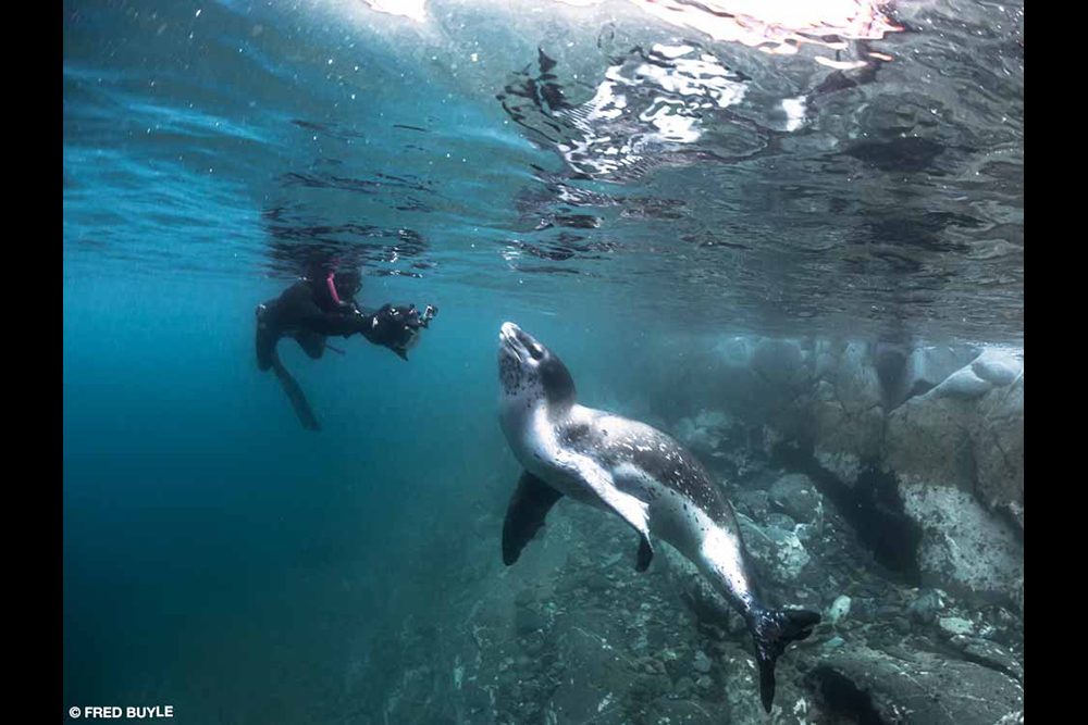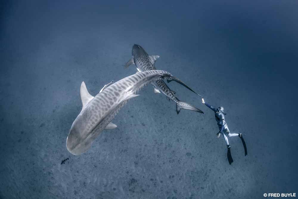 A STATEMENT ON FRED BUYLE’S WEBSITE briefly explains his approach to underwater photography: “To take his pictures and videos, Fred uses a simple formula: the water, available light, a camera, and one breath of air, nothing more, nothing less.” I would add to that list an extraordinary eye for composition and a passion for placing himself wherever the photo opportunities are. The images in his portfolio represent decades of travel to exotic destinations far from his home in the Azores. He has tolerated fewer overweight baggage fees than other photographers might, for his life and aesthetic are remarkably minimalistic for a man of such accomplishment.