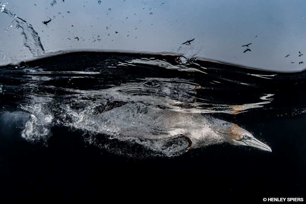 The long wingspan and streamlined bodies of gannets make flying look effortless as they glide along with just an occasional pulse of their wings. When they spot fish, the birds fly into the wind and stretch out their wings, precisely adjusting their position relative to their quarry, and then they hit the frigid water faster than an Olympic diver. These incredible birds have evolved air sacs in their heads and chests to survive these repeated heavy impacts. The sound underwater was thunderous, as streamlined white torpedoes pierced the surface. Visiting Shetland and photographing the gannets was an important moment, with the resulting images propelling my career forward. I make a point to visit Shetland every year.