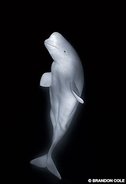 A beluga whale strikes a pose in the frigid subarctic of Hudson Bay, Manitoba, Canada.