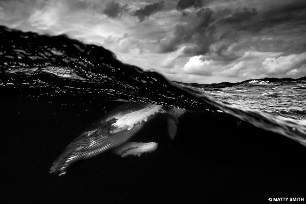 Near Sydney is a recurring wave that is ranked by many as one of the top five most dangerous waves to ride in the world. It’s named Ours by the few local guys crazy enough to paddle into it. It breaks over a shallow sandstone ledge just yards away from a dry rock shelf, so if you fall, there is nowhere to go. It’s an intimidating place to swim with a camera. It’s loud, there’s a lot of current, and anything could be swimming beneath you in the deep drop-off. The surfer is Evan Faulks, one of the masters of taming this wave. I remember our connection in this shot, with him staring out of the wave barrel straight into the lens barrel with intense concentration. I knew it was a keeper. Before marine wildlife, surf photography was my forte, and I still greatly respect those who excel in this field.