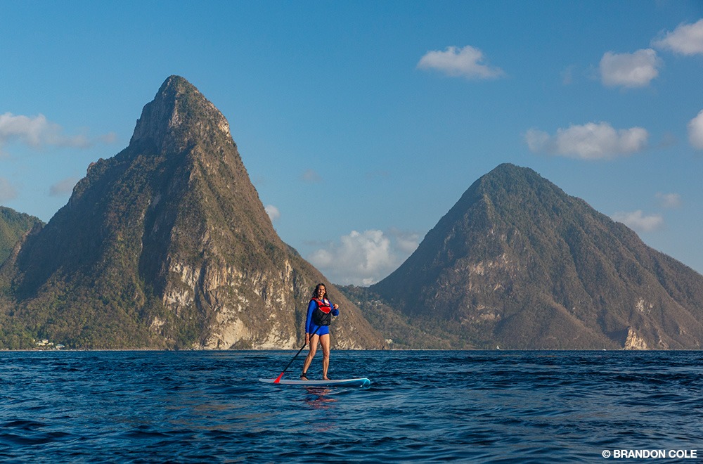 Paddleboarding just offshore of Anse Chastanet and Jade Mountain.