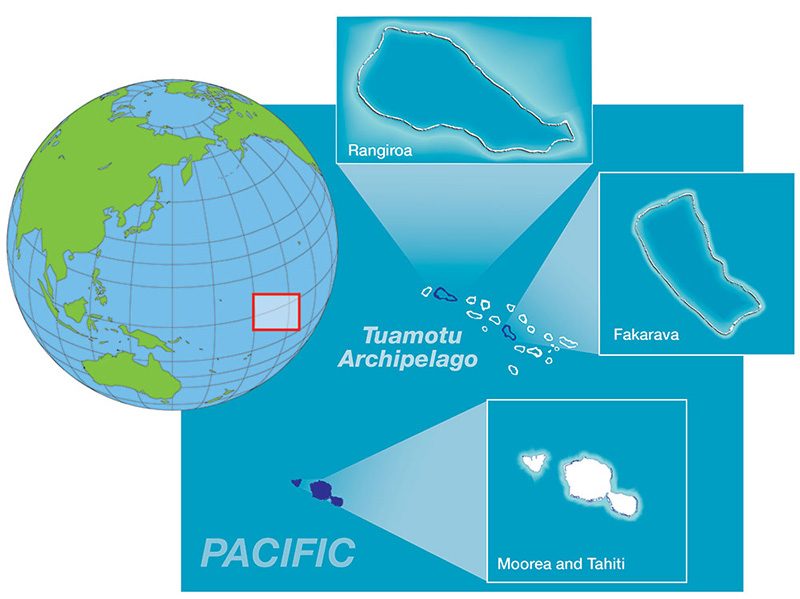 Getting there: French Polynesia is composed of 118 islands divided into five island groups: the Society Islands (which include Tahiti and Moorea), the Tuamotu Archipelago (which includes Fakarava and Rangiroa), the Gambier Islands, the Marquesas Islands and the Austral Islands. The capital is Papeete on Tahiti. Numerous airlines fly directly into Papeete’s Fa’a’āInternational Airport. Air Tahiti offers the best schedule of connecting flights to islands beyond Tahiti. Ferry boats are particularly efficient in connecting Tahiti and Moorea.