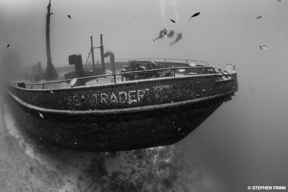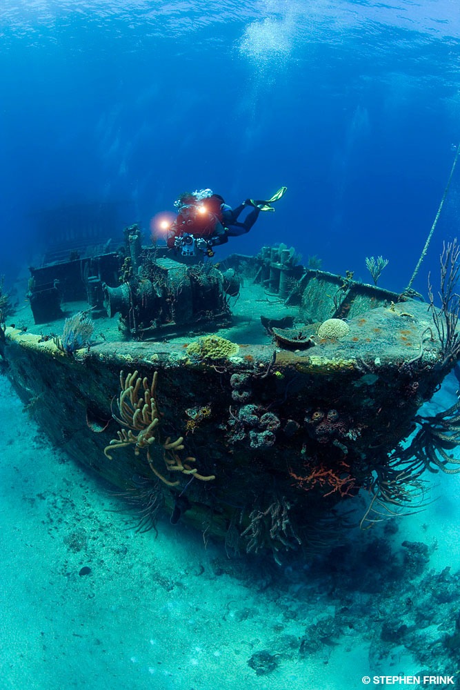 Having spent so much time in the Coral Triangle recently, good diving close to home was a privilege I was eager to experience again. My first dive on this trip was to the wreck of the Willaurie. This one had a bit of nostalgia attached to it. It was a 130-foot (40-m) freighter used to carry mail around the Bahamas. The ship was incapacitated, sank while under tow, and came to rest at Clifton Pier.
