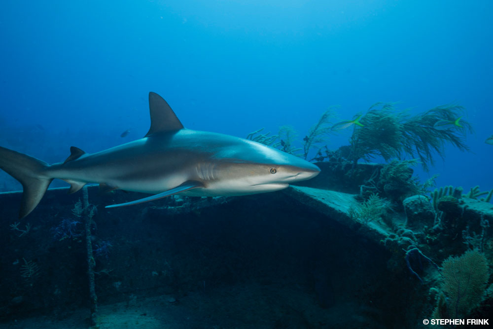 The best diving is in a consistent lee so that when the winter winds blow through the Bahamas, the land mass of New Providence typically leaves these dive sites calm. The visibility is generally excellent because of the proximity to the Tongue of the Ocean (TOTO), a deep ocean trench that plunges to 6,600 feet (2,012 meters) and separates Andros and New Providence islands. As a bonus, a healthy population of Caribbean reef sharks is at several dive sites near the TOTO, and now there are as many as 40 shipwrecks. For decades this part of the Bahamas was a happening place for underwater productions, including Shark Week episodes.