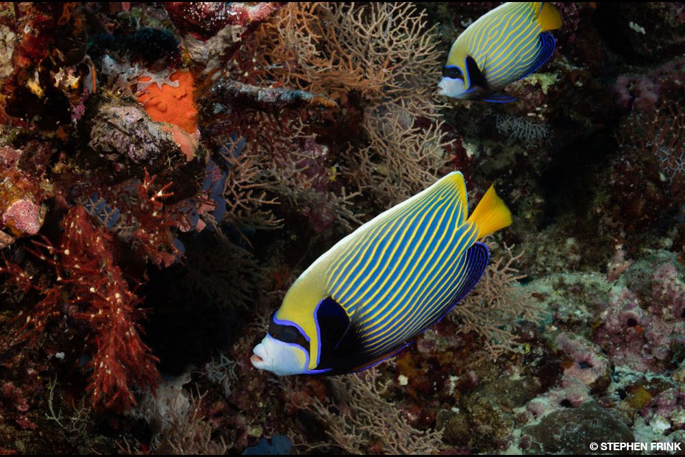 A regal angelfish visits a cleaning station at Fahalla Thila.