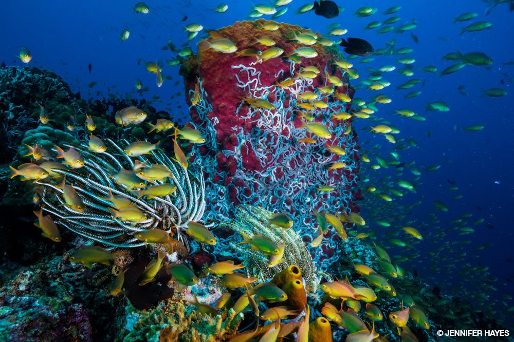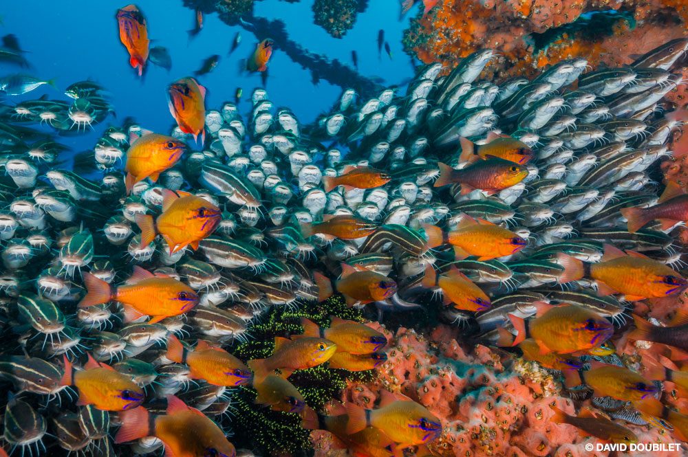 Blizzards of orange and yellow anthias, flocks of vampire triggerfish, jacks, barracuda, and rivers of convict blennies spill across the reef. Its acronym — VIP — is proper for this priceless coral corridor.