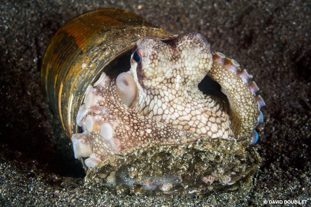 We left Tubbataha and met Lynn Funkhauser and filmmaker Leandro Blanco in Anilao. Batangas province is the birthplace of Philippines diving and a mecca for macro shooters hoping for an endless supply of subjects: octopuses, stargazers, Rhinopias scorpionfish in various colors, anemones, clownfish with eggs in different states of development, and goby-filled bottles. Look into everything because some creature is likely renting the space.