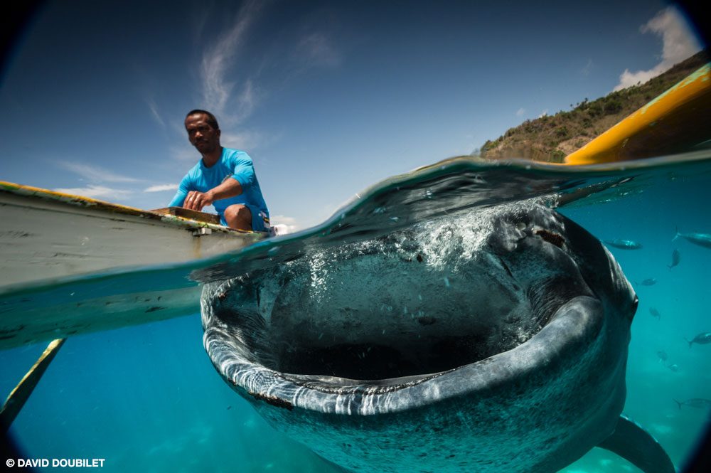A whale shark inhales frozen krill from a tourist in Oslob. ©JENNIFER HAYES AND DAVID DOUBILET