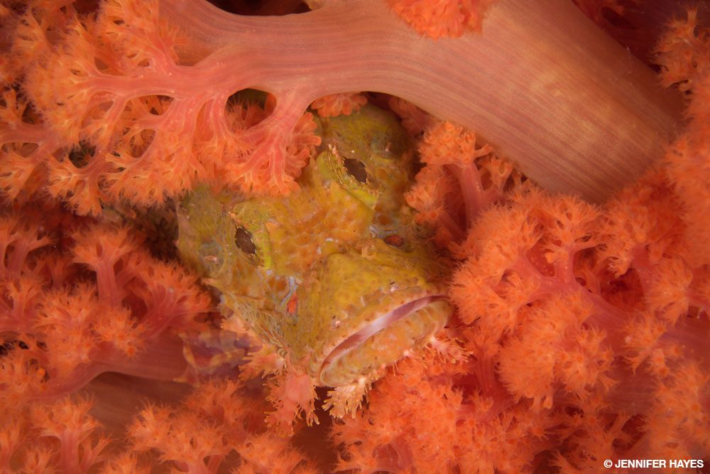 A backlit Rhinopias scorpionfish glows an unexpected blend of iridescent colors. ©JENNIFER HAYES AND DAVID DOUBILET