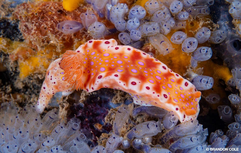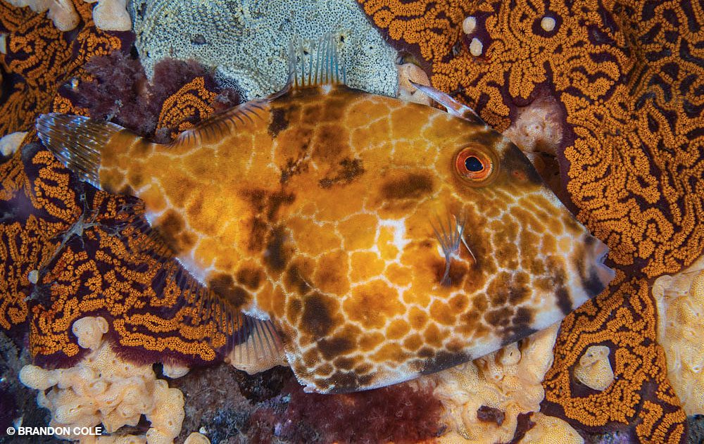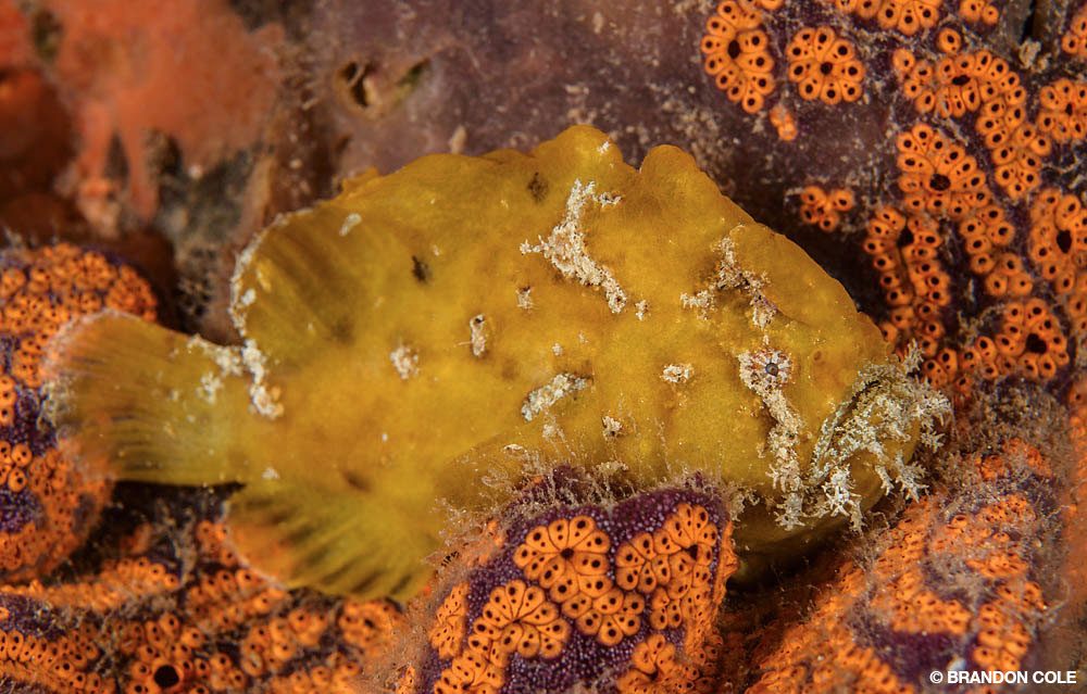 Divers may discover beautiful nudibranchs, elegant feather duster worms with feeding plumes extended, and an assortment of crabs, including bristled sponge crabs hiding from predators under oversized hats made of tunicates. Comical and charismatic Tasmanian blennies peer out from their lairs, bordered by colonies of bluebell tunicates. Dour-faced frogfish, such as whitespotted anglerfish and cryptic tasseled anglerfish, wait patiently in ambush mode. It pays to search diligently in the algae beds just south of Edithburgh Jetty in hopes of spotting shorthead seahorses and southern gulf pipefish clinging to and slithering through sargassum and corkweed plants.