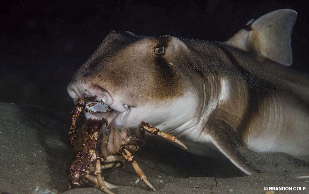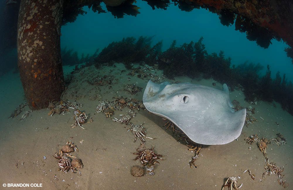 Predators are waiting for them. Hungry Port Jackson sharks and 6-foot (1.8-meter) smooth stingrays patrol the pier, timing their visit to feed on tender, newly molted crabs.