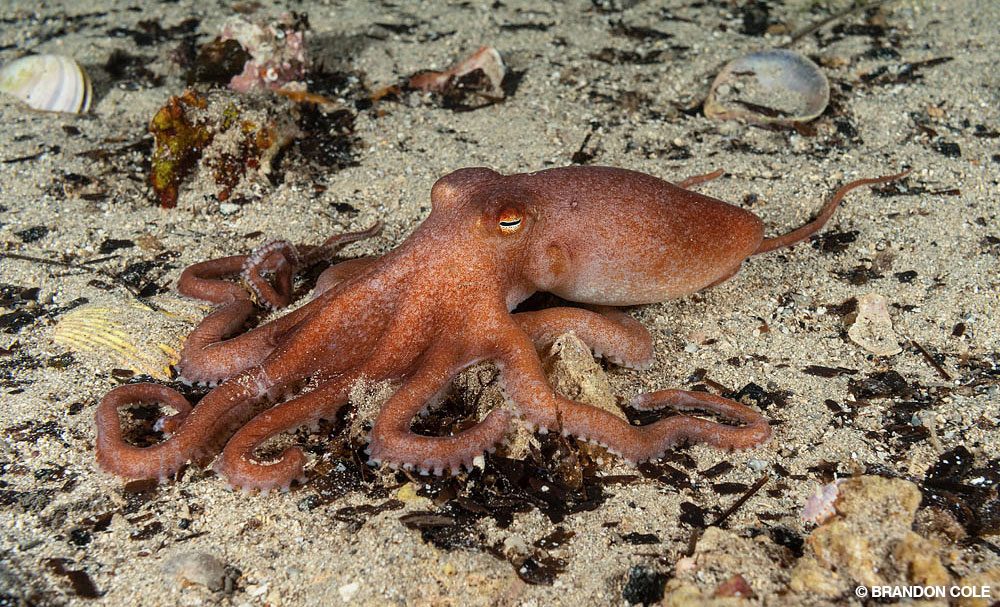 Nighttime is the right time to find cephalopods. I once counted seven species during a two-hour night dive at Edithburgh, including a blue-ringed octopus, sand octopus, mating bobtail squids, and a striped pyjama squid.