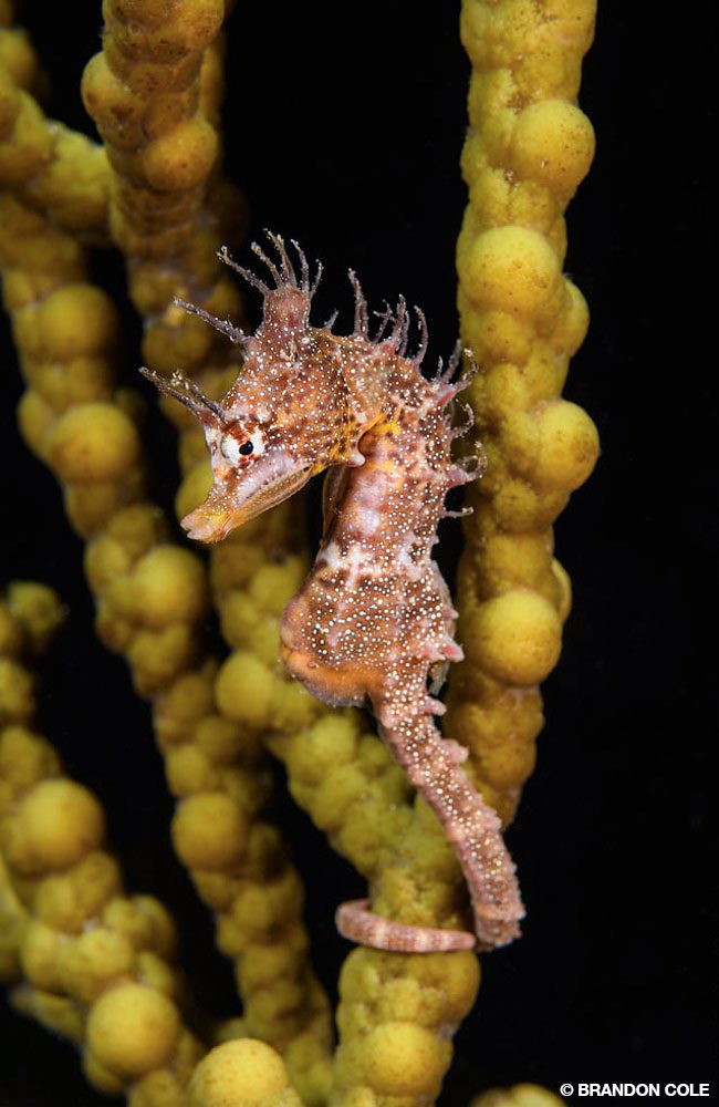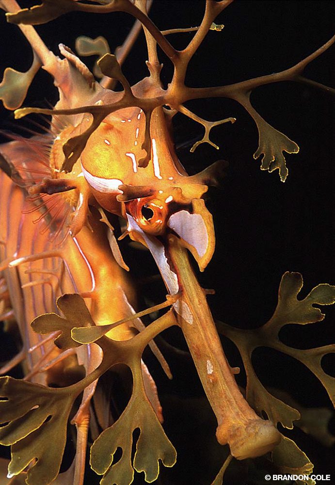 Leafy seadragons feed mainly on small crustaceans called mysids, sucking them into their tube-snouted mouths. Parenting is a team effort: A female transfers 200 to 300 eggs to her partner, placing them under the male’s tail. After fertilization he carries the developing brood until they hatch, and then the miniature seadragons must set off bravely into the big blue.