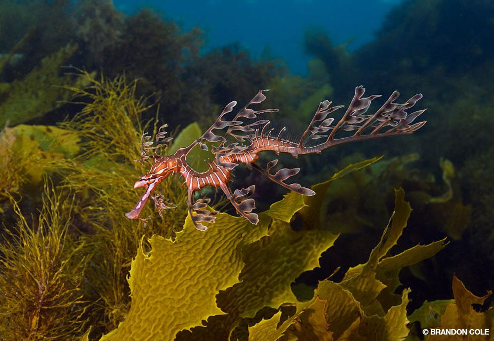 Divers can participate in citizen science by sharing their underwater seadragon photos with organizations that catalog these stunning fish. Distinctive body markings and branching patterns of the skin appendages help biologists identify individual seadragons and track them over time. Long-term monitoring projects at Rapid Bay have revealed that some seadragons are residents, including an individual nicknamed Wishbone they have seen here repeatedly over seven years. A similar identification program exists for weedy seadragons, which are close relatives of leafies. Divers can regularly find weedies at Flinders Pier on the Mornington Peninsula’s southern coast.