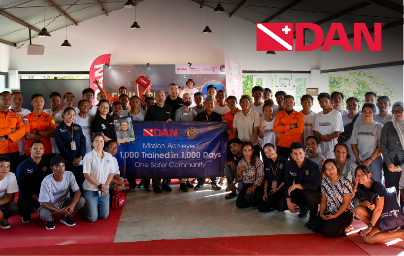 DAN is proud to announce the successful completion of its “One Thousand in One Thousand” initiative in Indonesia. The program, which aimed to equip 1,000 dive industry support professionals with lifesaving first aid and emergency oxygen skills within 1,000 days, reached its goal this week in Labuan Bajo.